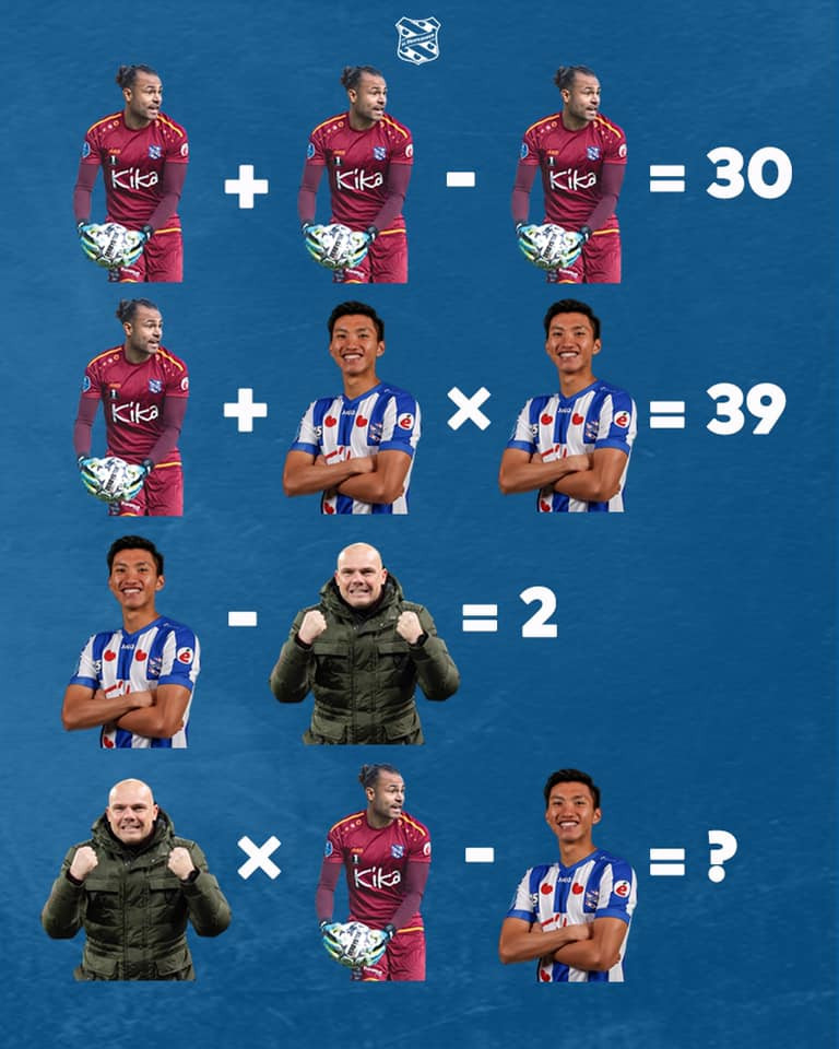 Và để duy trì sự kết nối với CĐV của mình, fanpage của SC Heerenveen đã nghĩ ra nhiều cách thú vị. Một trong số đó là trò đố hình ảnh được đăng tải tối qua 19-4. Ở đó, hình ảnh của Đoàn Văn Hậu được sử dụng bên cạnh thủ thành Warner Hahn và HLV trưởng Johnny Jansen, thay cho những con số bí ẩn.