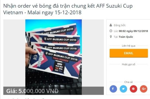 Trong những trận đấu giải AFF Cup 2018 có đội tuyển Việt Nam thi đấu trên sân nhà luôn thu hút sự quan tâm của hàng triệu người hâm mộ. Tuy vậy, bên cạnh số ít người may mắn mua được vé online để vào sân, đa số những người còn lại đành phải ngậm ngùi xem các trận đấu qua truyền hình hoặc tìm cách mua lại vé ở “chợ đen”. Nắm bắt được tâm lý này, không ít đối tượng “phe vé” đã rao bán vé với giá trên trời, tạo ra những “cơn sốt” vé.