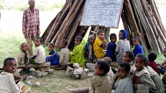 Một lớp học xóa mù chữ của trẻ em ở Uganda