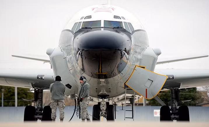 ANTD.VN - Hình ảnh hiếm chụp tại Greenville, Texas cho thấy máy bay trinh sát điện tử RC-135V/W Rivet Joint của Mỹ bị bóc toàn bộ lớp sơn tiêu chuẩn để bước vào chu kỳ đại tu và nâng cấp sâu.