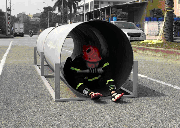 Luyện tập chui qua ống tìm kiếm cứu nạn