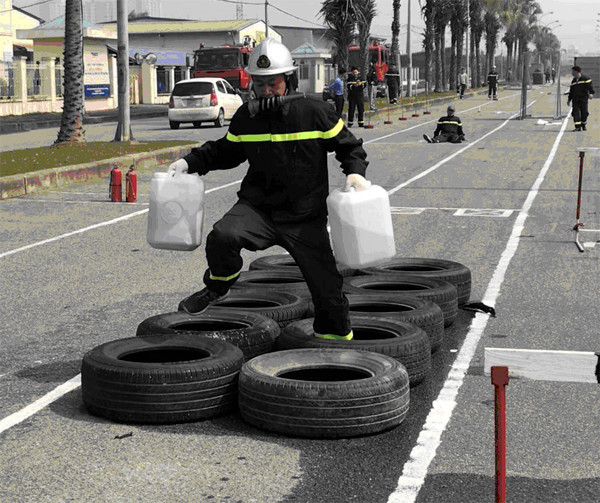 Từng tốp, từng tốp mỗi tổ một nhiệm vụ, một lĩnh vực khác nhau, nhưng đều có điểm chung là những giọt mồ hôi đầm đìa lưng áo. “Đối với mỗi chiến sỹ chữa cháy, không chỉ học cách dùng vòi phun nước chính xác, hiệu quả mà còn phải thuần thục thao tác cơ bản như tháo nút, buộc dây, phá khóa, chui ống... Những kỹ năng này thường xuyên phải thực tập, chung với yêu cầu nhiệm vụ sẵn sàng chiến đấu“ - Đại úy Hoàng Đức Mạnh, Phó đội trưởng Đội Cảnh sát PCCC và CNCH - CAH Gia Lâm cho hay.