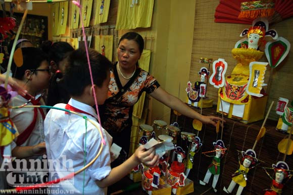 Trong những ngày mở cửa trưng bày, giới thiệu và dạy nghề ở phố cổ, mặc dù biển hiệu bắt mắt nhưng tôi thấy lượt người đến được trên đầu ngón tay. Gian trưng bày mở cả ngày mà mãi cuối giờ chiều mới thấy một nhóm học sinh trường Tiểu học Hồng Hà được cô giáo đưa đến xem. Thế nhưng trong món đồ chơi ấy bọn trẻ cũng rất thờ ơ, chỉ đến khi cô giáo nhắc các em mới hướng mắt vào người giới thiệu “đây là ông tiến sỹ giấy, kia ông nghè, ông đánh gậy…”. Dưới đây là hình ảnh đồ chơi, và người làm ra đồ chơi được mời mang đến trưng bày và giới thiệu để gìn giữ đồ chơi dân gian.