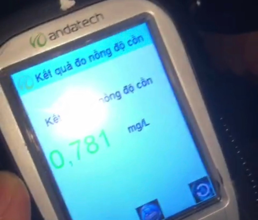 | Lái xe N.T.M vi phạm ở mức 0,781mg/lít khí thở. |