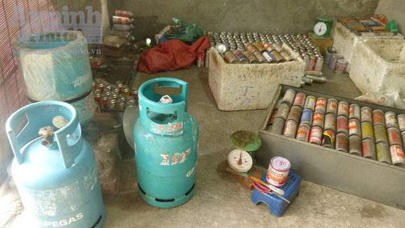 Lực lượng chức năng đã thu giữ số lượng lớn bình gas du lịch dùng để san chiết trái phép