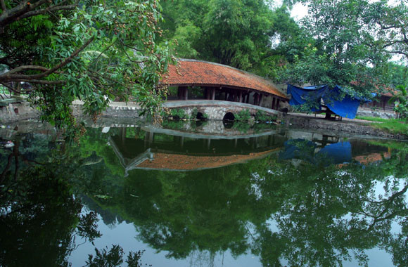 Cầu chùa một kiến trúc đặc biệt của Chùa Thầy dưới chân núi Sài Sơn.
