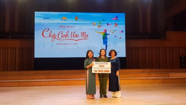 Trong đêm diễn, Giám đốc Công ty SiPM education - đại diện Ban Tổ chức - đã tiếp nhận quà từ thiện của cán bộ chiến sỹ và Hội Phụ nữ CAQ Hoàng Mai số tiền 150 triệu đồng. Chưa kể, tấm lòng của đơn vị tổ chức đã chạm đến trái tim nhân ái của nhiều khán giả, và đã được cụ thể hóa thành những món quà, để gửi đến các bệnh nhân.