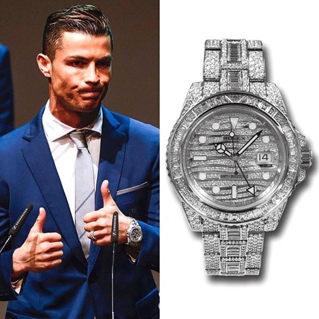 Theo báo chí Anh, Ronaldo đang đeo chiếc đồng hồ Rolex thuộc hàng hiếm và đắt nhất thế giới có tên là GMT Master Ice. CR7 từng cùng nó xuất hiện trước công chúng ở sự kiện Dubai Globe Soccer Awards hồi đầu năm nay.