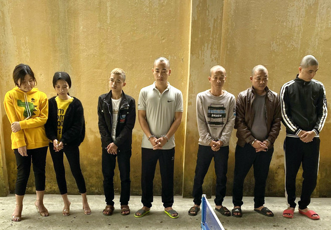 Nhóm đối tượng bị bắt quả tang gồm Biện Hùng Cường (SN 1991), Trần Văn Mão (SN 1987), Nguyễn Văn Bình (SN 1983), Nguyễn Văn Phương (SN 1988), đều ở xã Hải Thanh, Phạm Văn Tùng (SN 2001 ở xã Tĩnh Hải), Nguyễn Thị Luyến (SN 2003, ở xã Hải Châu) cùng huyện Tĩnh Gia và Lê Ngọc Trâm (SN 2001, ở phường An Cựu, TP Huế, tỉnh Thừa Thiên - Huế).