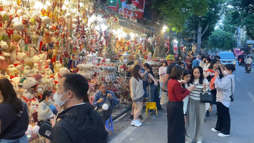 ANTD.VN - Còn hơn 1 tháng nữa mới đến lễ Giáng sinh nhưng phố Hàng Mã (Hà Nội) đã rực rỡ với đủ các loại hàng trang trí, thu hút đông đảo khách tham quan.