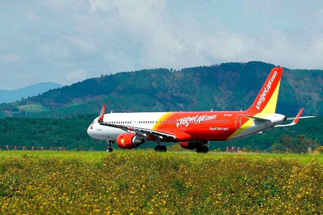 Tàu bay Vietjet sơn hai màu đỏ vàng của lá cờ Việt Nam, biểu tượng du lịch và ca khúc Hello Việt Nam đã mang hình ảnh đất nước, thiên nhiên, con người Việt Nam tới với bạn bè năm châu trên khắp hơn 80 điểm đến quốc tế mà hãng đang khai thác, từ Trung Quốc, Ấn Độ, Nhật Bản, Hàn Quốc, Thái Lan, Singapore, Malaysia, Indonesia, Malaysia…