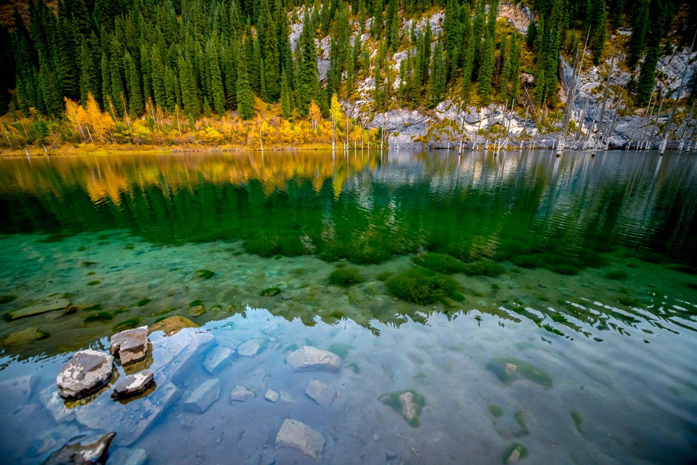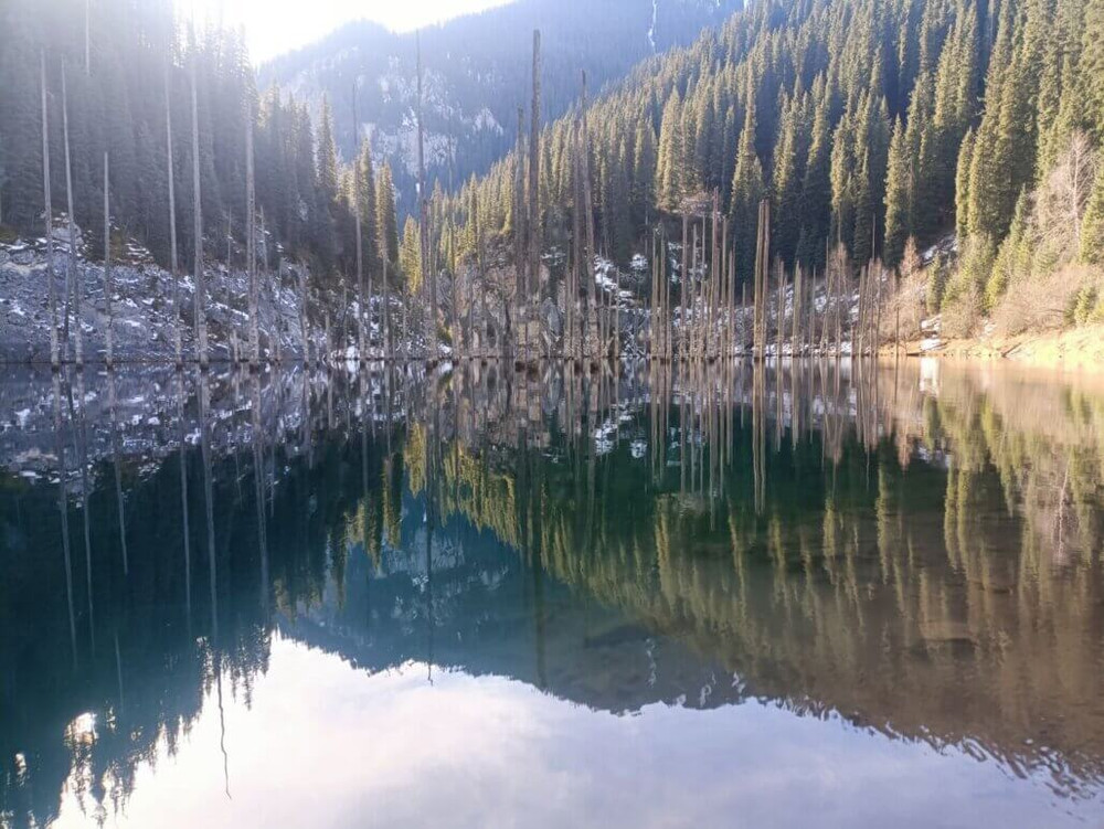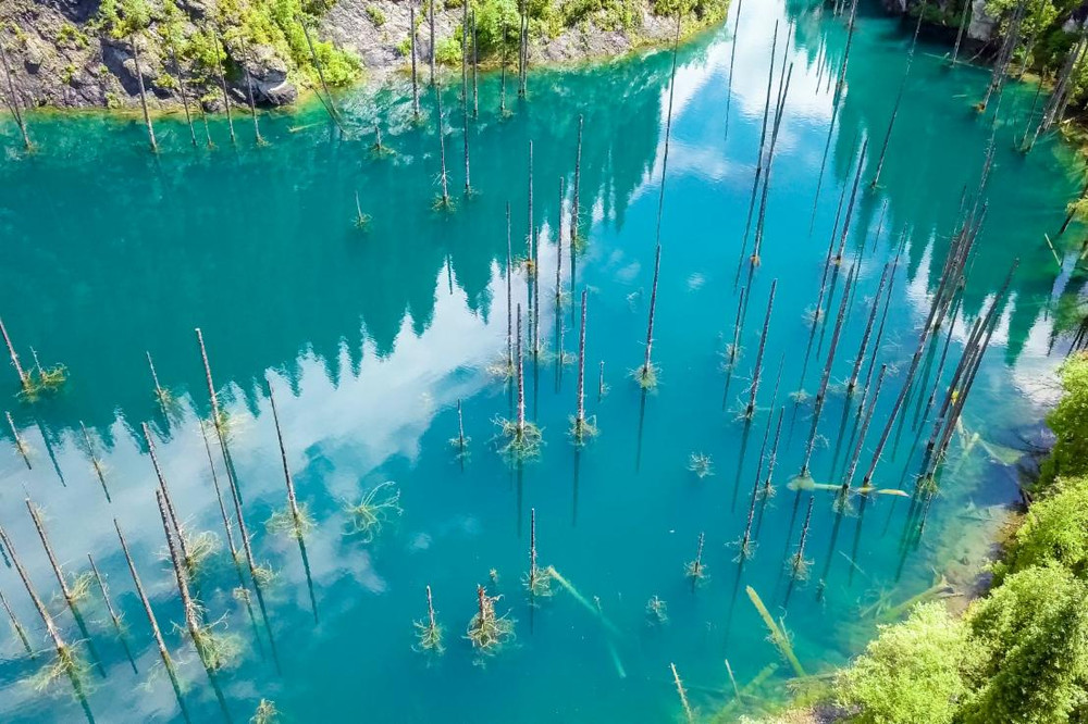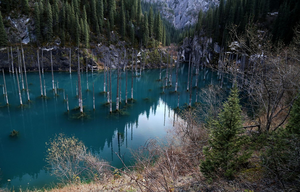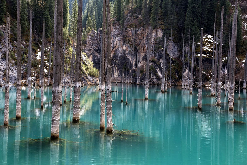 ANTD.VN - Hồ Kaindy nằm trong công viên quốc gia hồ Kolsai, Kazakhstan nổi tiếng vì phong cảnh đẹp với rừng ngập nước có những cây vân sam nhô lên, nổi bật giữa đồi thông xanh mướt huyền ảo.