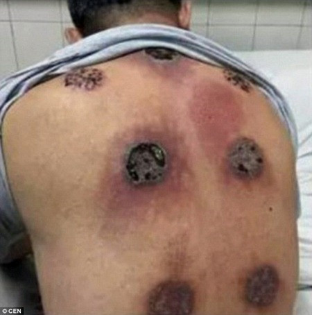 Ông Li bị nhiễm trùng nặng trên lưng vì giác hơi sai cách