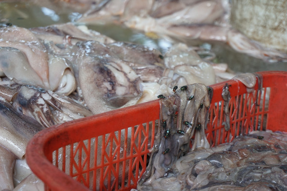 ...mực bốc mùi ôi thiu, ruồi nhặng bâu đen...
