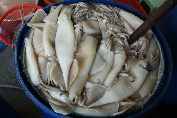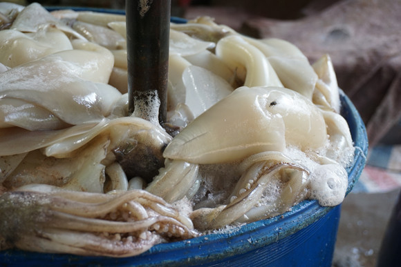 ...mỗi ngày chủ cơ sở cho ra thị trường khoảng 300 kg mực trắng phau...