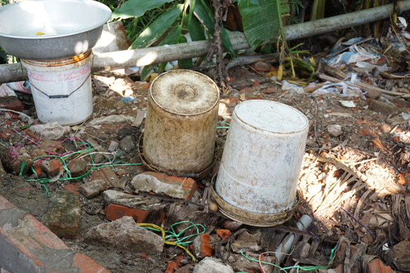 ...dụng cụ đựng mực vứt ngay trên đống rác...