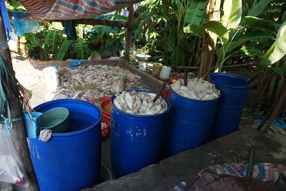 ...những thùng ngâm tẩm mực bẩn đặt cạnh vườn chuối
