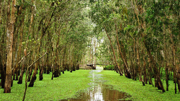 Đến nơi đây, có một trải nghiệm thú vị mà bạn không thể bỏ lỡ là đi thuyền trên đồng nước mênh mang, khỏa tay chèo để cảm nhận vẻ đẹp thanh bình khi mũi thuyền nhè nhẹ rẽ thảm bèo xanh mướt tiến sâu vào rừng. Len lỏi giữa những lối đi nhỏ xuyên qua khu rừng tràm những cây tràm cổ thụ soi bóng dưới mặt nước, hay những cây thủy liễu lay mình mềm mại, nhẹ nhàng theo từng con sóng nhỏ cứ nối tiếp hiện ra dưới cái nắng vàng dìu dịu của tiết trời vào thu. Dưới bầu không khí trong lành và mát rượi, những con đường nước có sức hút đầy mê hoặc bởi màu xanh man mát của bèo tây làm nền cho những vòm tay cao rộng của những hàng tràm xanh thẫm. Càng tiến sâu vào rừng, không gian và thời gian như được cô đặc lại tạo nên một cảm xúc tĩnh tại vô cùng. Và chỉ khi có tiếng mái chèo khỏa nước hay tiếng cá quẫy đuôi hòa với tiếng chim chóc gọi bầy mới có thể kéo bạn ra khỏi sự tĩnh lặng ấy.
