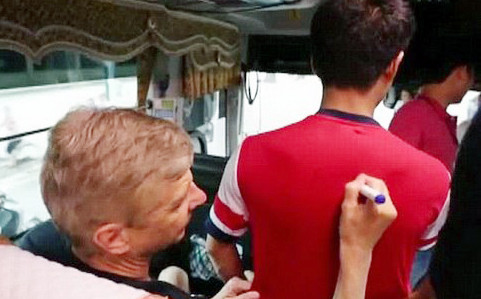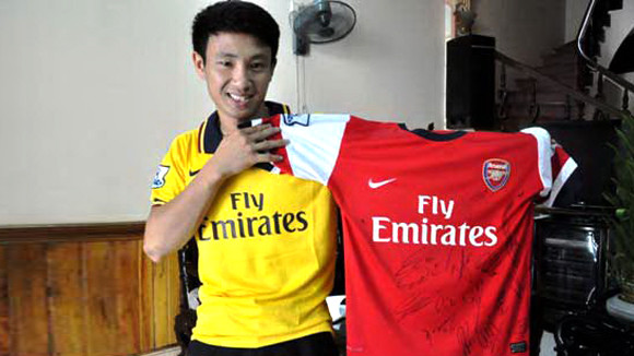 Chàng sinh viên Vũ Xuân Tiến được cả thế giới biết đến và gọi anh là Running man, sau hành động chạy 5km bám theo xe CLB Arsenal trên đường phố Hà Nội để xin chữ ký các thần tượng. Cảm mến nỗ lực và tình yêu với đội bóng của Xuân Tiến, các thành viên Arsenal đã cho phép anh lên xe và còn ký tặng lên chiếc áo cầu thủ này mang trên người.