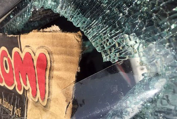 Cửa kính ô tô bị vỡ do Huy dùng súng cao su bắn đạn bi sắt
