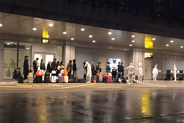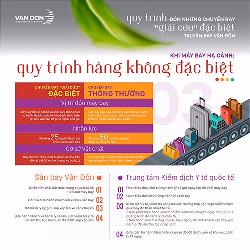 Sau khi hạ cánh xuống sân bay quốc tế Vân Đồn, các tàu bay đã đậu ở bãi đỗ xa. Hành khách làm thủ tục nhập cảnh và kiểm tra hải quan tại khu vực phía ngoài nhà ga, đảm bảo không ảnh hưởng tới hoạt động chung của sân bay. Tất cả hành khách khi xuống máy bay đã được thực hiện đúng quy trình áp dụng với khách về từ vùng dịch, theo quy định của Bộ Y tế.