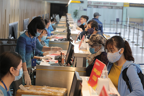 Tại Cảng hàng không quốc tế Vân Đồn, công tác đón tiếp các chuyến bay thương mại đến và đi được chuẩn bị chu đáo theo đúng quy trình, quy chuẩn và hướng dẫn về phòng chống dịch của Bộ Y tế. Tất cả các hành khách phải thực hiện nghiêm túc quy định đeo khẩu trang trong suốt quá trình làm thủ tục tại nhà ga.