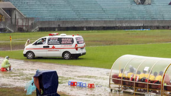 Phút 30, hậu vệ Đoàn Việt Cường của XM Xuân Thành bị chảy máu, dập sống mũi sau pha không chiến với một cầu thủ chủ nhà. Nhưng thay vì phải chờ bộ phận khiêng cáng đưa Việt Cường rời sân để lên xe cấp cứu thì chiếc xe cứu thương đã… lao thẳng vào sân cỏ định đón Việt Cường “tại trận”, khiến BTC sân một phen hoảng hốt. Nếu một nhân viên không tức tốc lao tới ngăn lại thì có lẽ, chiếc xe ngoài việc làm nát mặt cỏ còn lao tới giữa sân, nơi đám đông cầu thủ đang xúm lại quanh Việt Cường.