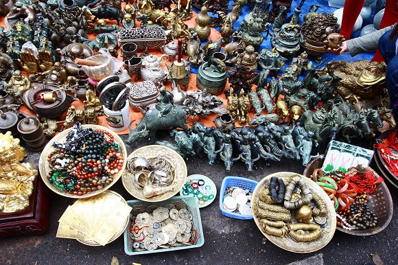 Chợ đồ cổ họp duy nhất một lần trong năm tại ngã 5 Hàng Mã, Hàng Cân, Hàng Lược, Hàng Đồng... (Hà Nội). Các mặt hàng ở đây đa dạng, phổ biến nhất là các loại đồ thờ, tượng phật hoặc tứ linh bằng đồng,… ngoài ra còn có các đồ gốm sứ.