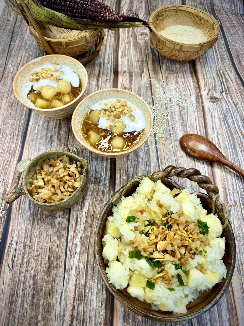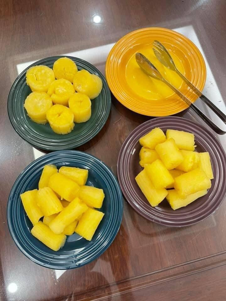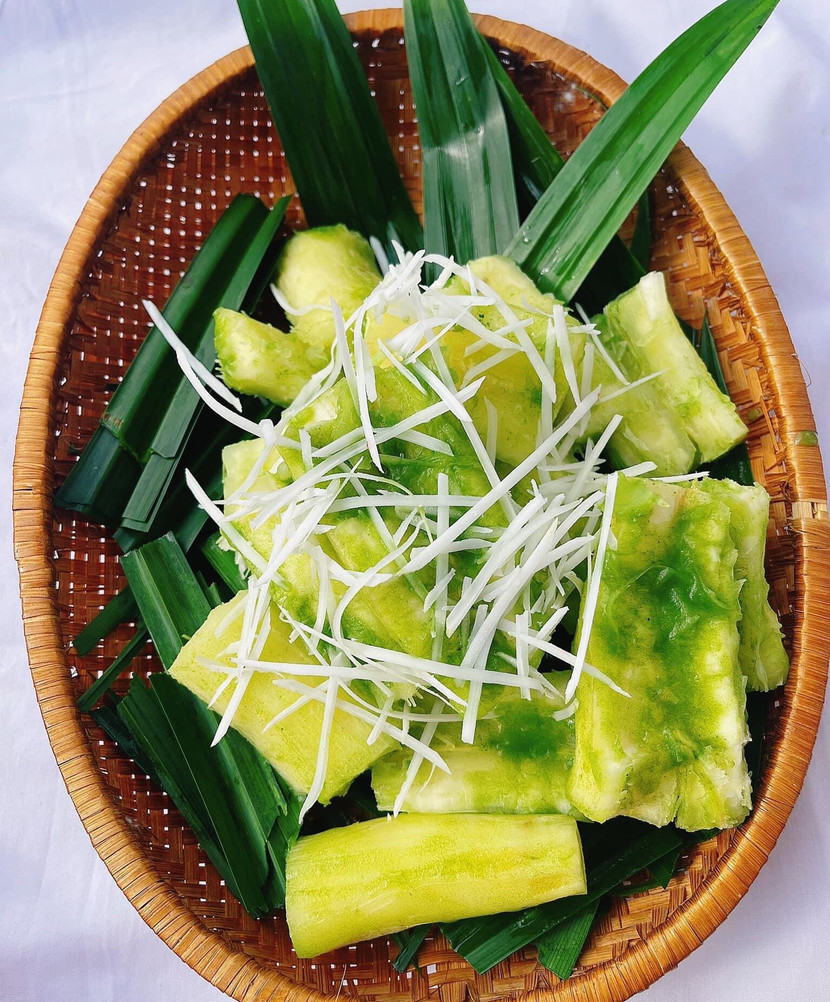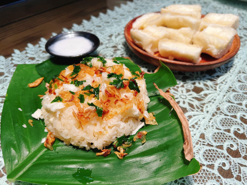 Thời gian qua món sắn hấp nước cốt dừa, lá nếp, bỗng là “hot trend” trên mạng xã hội. Đó là những củ sắn được luộc hoặc hấp cho chín tới, sau đó đổ bỏ nước luộc đi rồi thay nước mới, thêm đường, nước cốt dừa, dừa nạo, đặc biệt là nước lá nếp đã được xay lọc kỹ. Cứ thế mà rim trên lửa vừa nhỏ cho đến khi những miếng sắn nở bung, phần nước cốt thấm hết vào sắn là được. Những miếng sắn xanh màu lá non rất hấp dẫn, ăn vừa ngọt thơm, vừa bùi, vừa béo lại vừa dẻo