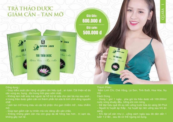 Sản phẩm Trà thảo dược giảm cân tan mỡ của Quyên Lara Việt Nam được quảng cáo trên mạng