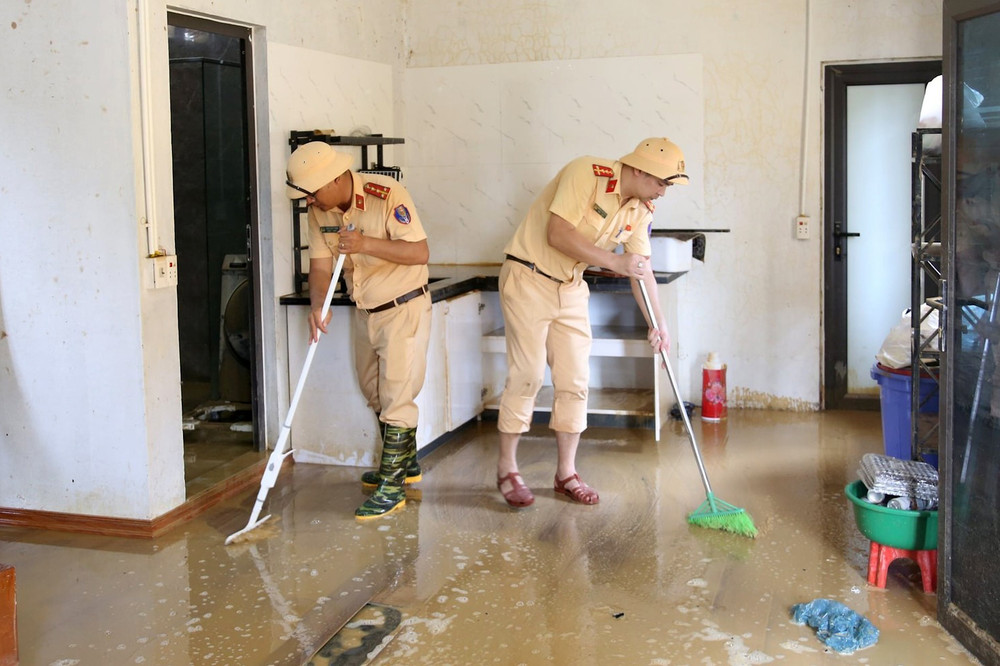 Công an Cao Bằng lội bùn dọn dẹp, giúp dân ổn định cuộc sống