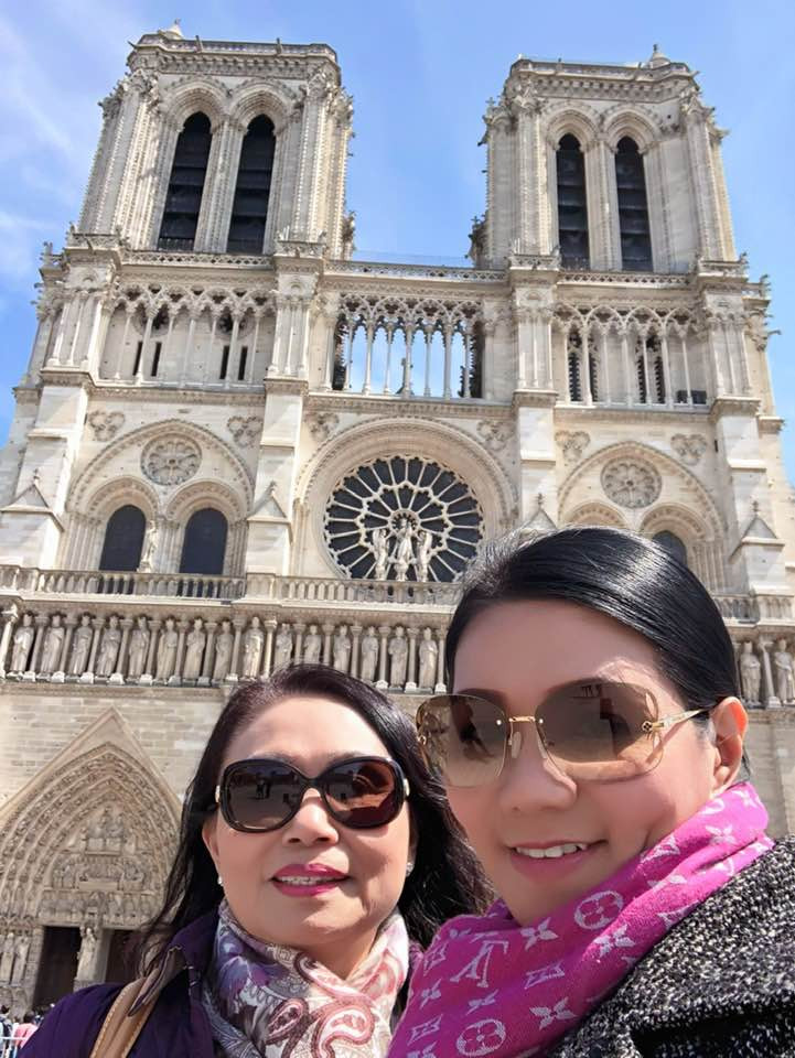 Nghệ sỹ cải lương Ngọc Huyền chụp ảnh lưu niệm bên nhà thờ Đức Bà Paris
