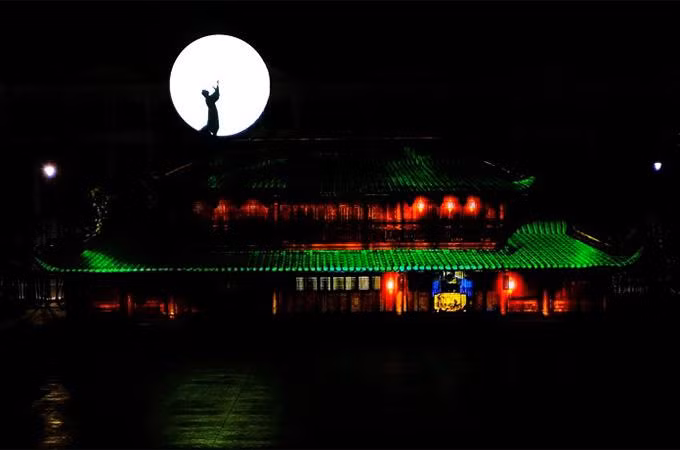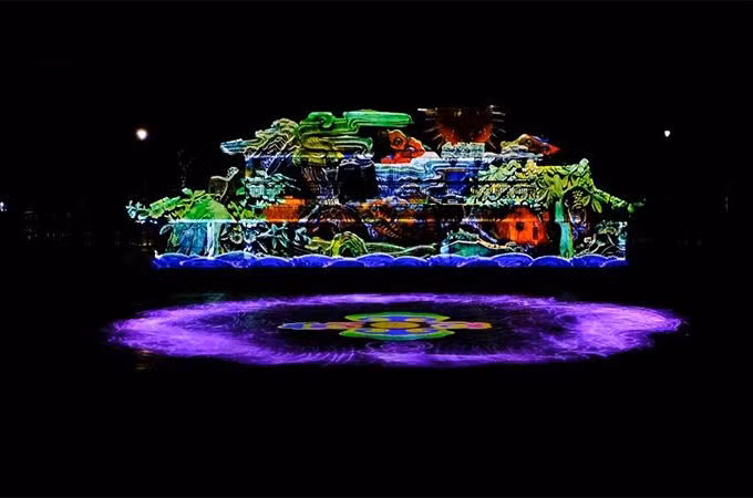 Đạo diễn Việt Tú đã khéo léo sử dụng những công nghệ hiện đại nhất thế giới để kể lại chuyện văn hoá dân tộc và các nhân tố lịch sử quen thuộc trong một “ma trận trình diễn” độc nhất vô nhị kỷ lục quy mô lên tới 11.200 m2, thiết kế theo mô hình kinh thành cổ xưa.