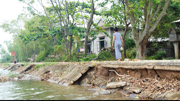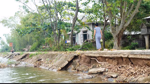 Có những điểm, sạt lở đã ăn sâu vào sát sân nhà dân. Trong tổng số 76 hộ dân của toàn thôn thì có khoảng 10 hộ dân nằm sát bờ kè đã bị sạt lở ăn sát vào sân nhà, gây mất an toàn về nhà cửa, tài sản và cây trồng.