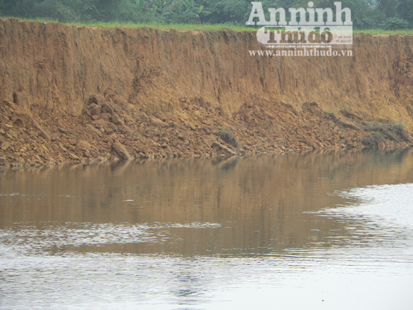 Bờ sông Nhùng thuộc thôn Xuân Lâm bị sạt lở nặng