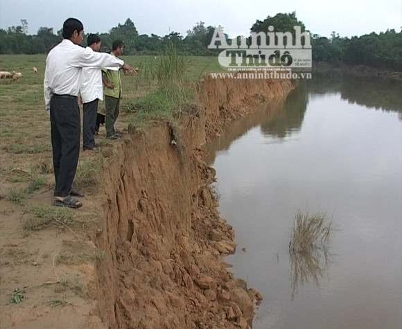 Sạt lở đang cuốn trôi nhiều diện tích đất sản xuất của người dân thôn Xuân Lâm