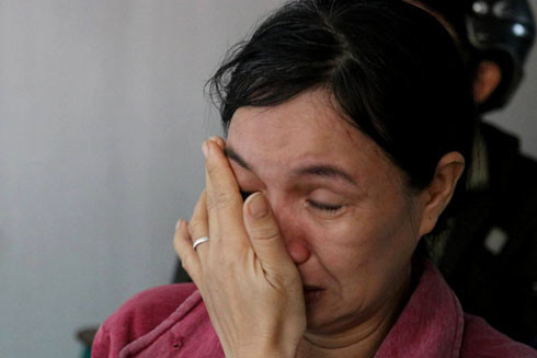 | Người chồng xông vào hiện trường tìm kiếm vợ con. Ảnh:Xuân Ngọc |