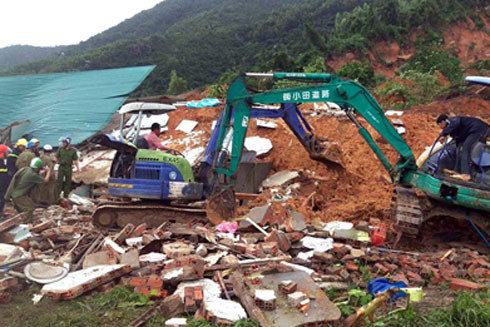 Lực lượng cứu hộ đang huy động các máy xúc để đào bới tìm người mất tích.
