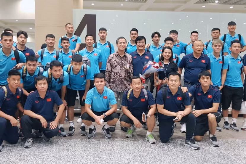 Đón thầy trò HLV Park Hang-seo tại sân bay có Đại sứ đặc mệnh toàn quyền Việt Nam tại Indonesia - ông Phạm Vinh Quang cùng giới truyền thông. Để đến được Bali, ĐT Việt Nam đã phải trải qua 2 chặng bay: từ Hà Nội vào TP.HCM và từ TP.HCM đi Bali, nên cần thời gian hồi phục.