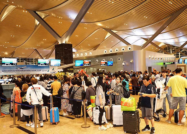 Rất đông hành khách làm thủ tục check-in chuyến bay thường lệ Cam Ranh – Incheon đầu tiên của Bamboo Airways