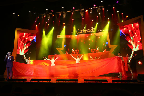 "Màu hoa đỏ" lần thứ 11 diễn ra với ba chương nghệ thuật có chủ đề: Tiếng gọi non sông; Đất nước vẹn tròn ân nghĩa và Rạng rỡ Việt Nam.