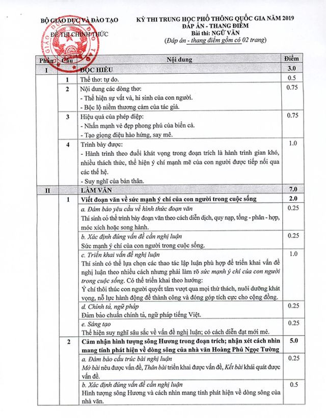 Môn Ngữ văn là môn duy nhất được Bộ GD-ĐT công bố đáp án sau thi