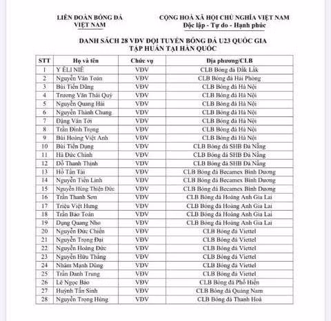 Nòng cốt đội U23 tập trung đợt này vẫn là các tuyển thủ vừa giành HCV SEA Games, được bổ sung thêm một số nhân tố mới. Tuy nhiên sẽ không có hai cầu thủ quá tuổi là Trọng Hoàng và Hùng Dũng, cũng như Đoàn Văn Hậu do giao kèo với SC Heerenveen.