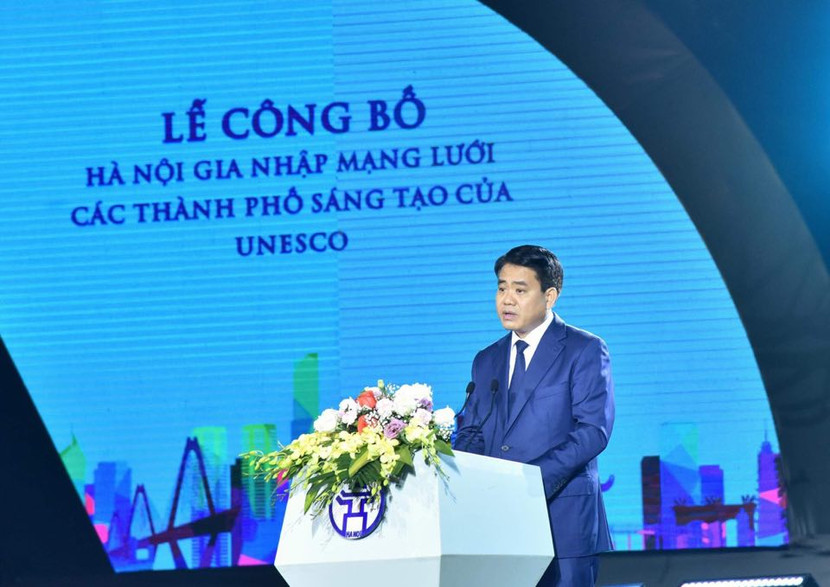 Phát biểu tại buổi lễ, Chủ tịch UBND TP Hà Nội Nguyễn Đức Chung nhấn mạnh tới ý nghĩa của việc Hà Nội gia nhập mạng lưới các thành phố Sáng tạo của UNESCO. Ông cho rằng: “Khi tham gia mạng lưới các Thành phố sáng tạo, là điều kiện để thành phố xây dựng và thúc đẩy vị trí cạnh tranh trong thu hút đầu tư, kích thích tái tạo đô thị, tập trung các chương trình phát triển giáo dục và các sự kiện văn hóa gắn liền với sự phát triển bền vững. Tham gia mạng lưới các Thành phố sáng tạo của UNESCO là bước đi đầu tiên, nhưng có ý nghĩa quan trọng cho mục tiêu nâng cao vị thế và tạo dựng hình ảnh mới, hấp dẫn hơn cho Thủ đô Hà Nội. Để thực hiện cam kết, thành phố sẽ cụ thể hóa bằng những chương trình, hành động cụ thể nhằm thúc đẩy tiềm năng, sức mạnh mềm của giá trị ngàn năm văn hiến của Thủ đô".