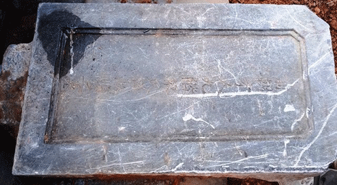 Đến chiều 24-6, lực lượng tìm kiếm đã tìm thấy một tấm bia đá tảng nguyên khối, nằm cách nền móng khu lăng mộ bị đào xới khoảng 50m, dưới lớp đất sâu 1,5m. Bia có chiều cao 67cm, rộng 32cm, dày 10cm. Trên bia khắc dòng chữ Hán: “Tiền Triều Tài Nhân Cửu Giai Lê Thị Thụy Thục Thuận chi mộ”. TS. Phan Thanh Hải, Giám đốc Trung tâm Bảo tồn Di tích Cố đô Huế xác nhận, chắc chắn đây là bia mộ của vợ vua nhà Nguyễn. Tuy nhiên, vợ vua nào thì chưa thể xác định được. Ngay sau đó, Sở VHTT tỉnh Thừa Thiên - Huế đã cho tạm dừng thi công và khoanh vùng bảo vệ.