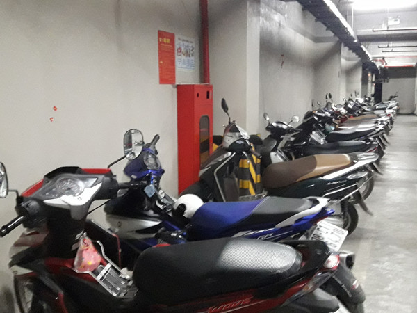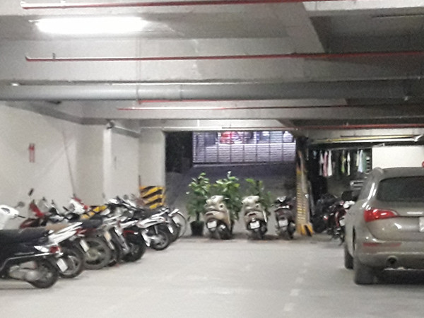 16h45 tối, chúng tôi có mặt tại tòa nhà 15T1 số 310 Minh Khai, quận Hai Bà Trưng, Hà Nội. Dưới tầng hầm rất nhiều ô tô và xe máy, và đây có thể nói là một kho xăng khổng lồ về đêm. Chỉ một chi tiết nhỏ nhưng cho thấy sự thiếu hiểu biết về an toàn PCCC của các bảo vệ tại đây cũng như lỗi của Ban quản trị tòa nhà. Điều đầu tiên có thể nói việc dẫn dẫn điện tự phát để cho hàng loạt xe đạp điện nạp điện dưới hầm là điều nguy hiểm.