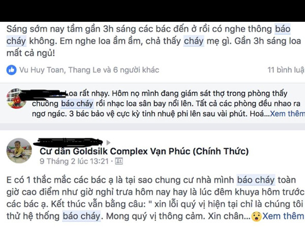 Cũng theo anh N., việc báo cháy giả không chỉ xảy ra ban ngày, mà ngay cả buổi tối, thậm chí nửa đêm hệ thống báo cháy cũng phát loa báo cháy khiến nhiều người hoảng hốt, mất ngủ. Thậm chí, đã có nhiều lần, người dân phải chạy bộ từ tầng 21 xuống dưới vì nghe loa thông báo đang có hỏa hoạn ở tòa nhà.