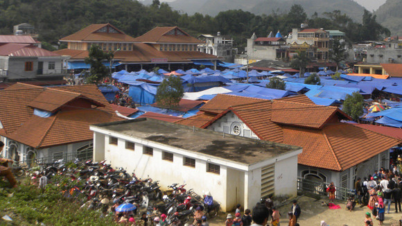 Phía sau chợ là bãi đất trống bán gia súc, gia cầm. Các chú chó con được buộc dây ở cổ được bán với giá từ 70.000đ đến 90.000 đ/con; gà lông vàng mượt, chen chúc trong lồng giá 70.000 đ/kg, lợn lửng giá 90.000 đ đến 100.000 đ/kg; đặc biệt hơn cả là chợ trâu, ngựa, bò án ngữ trên thửa đồi sau cùng của chợ. Hầu hết là đàn ông bản dậy từ sáng sớm, dắt ngựa, trâu đến đây dịp phiên chợ. Mặt trời đã quá đỉnh núi, sương tan, cái nắng gắt cuối thu làm chùn bước chân du khách, họ lại tấp vào những dãy hàng, quán có mái che phía trong chợ… nơi đây đa số chỉ có người dân bản địa với những chú trâu hiền lành, lặng lẽ cúi mặt. Thỉnh thoảng mới có khách dưới xuôi ở Hà Tây, Thái Bình… lên tìm mua trâu thịt những tay lái trâu có kinh nghiệm chọn trâu lấy sức cấy thường là con đực, to, khỏe, vai rộng có chiếc cổ lừng lững… Trâu có giá trung bình từ 5 triệu đến 8 triệu đồng/con, như thế so với dưới xuôi cũng rẻ gần một nửa.