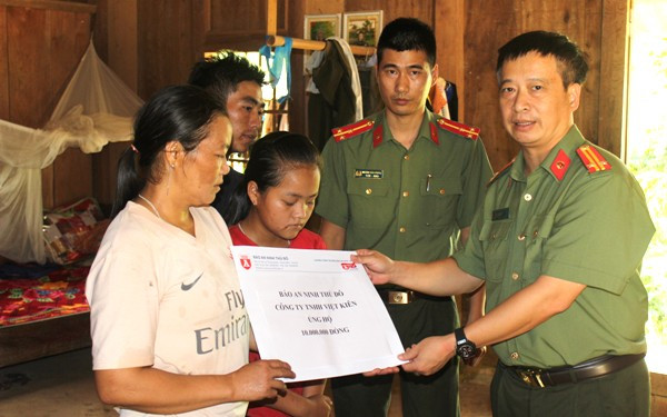 ANTD.VN -Ngay sau khi tuyến đường nối vào bản Pá Hộc, xã Nhi Sơn, huyện Mường Lát, Thanh Hóa được khơi thông, đoàn công tác xã hội của Báo ANTĐ do Trung tá Nguyễn Thanh Bình, Tổng biên tập dẫn đầu đã nhanh chóng có mặt, sẻ chia những mất mát, đau thương, khó khăn với dân bản; thăm hỏi, tặng quà cho thân nhân gia đình đồng chí Thao Văn Súa, Trưởng Công an xã Nhi Sơn hy sinh trong khi giúp dân sơ tán trong cơn lũ dữ tối 3-8.