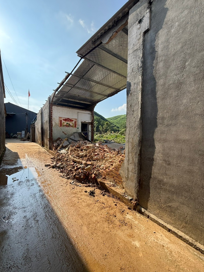 | Lũ gây sập nhà dân ở xã Nam Cường |